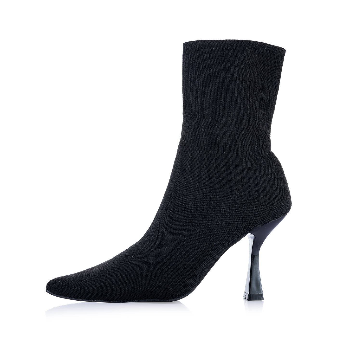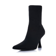 Give your look a major boost of modern style with this stunning black ankle boot. Crafted from a knit fabric that hugs your leg like a sock, it provides a slim, elegant silhouette that is comfortable at the same time. But the real star here is the unique sculptural heel that fuses boldness with femininity. Perfect for evening wear, formal occasions, or simply for standing out in your daily outfits. Wear art on your feet!