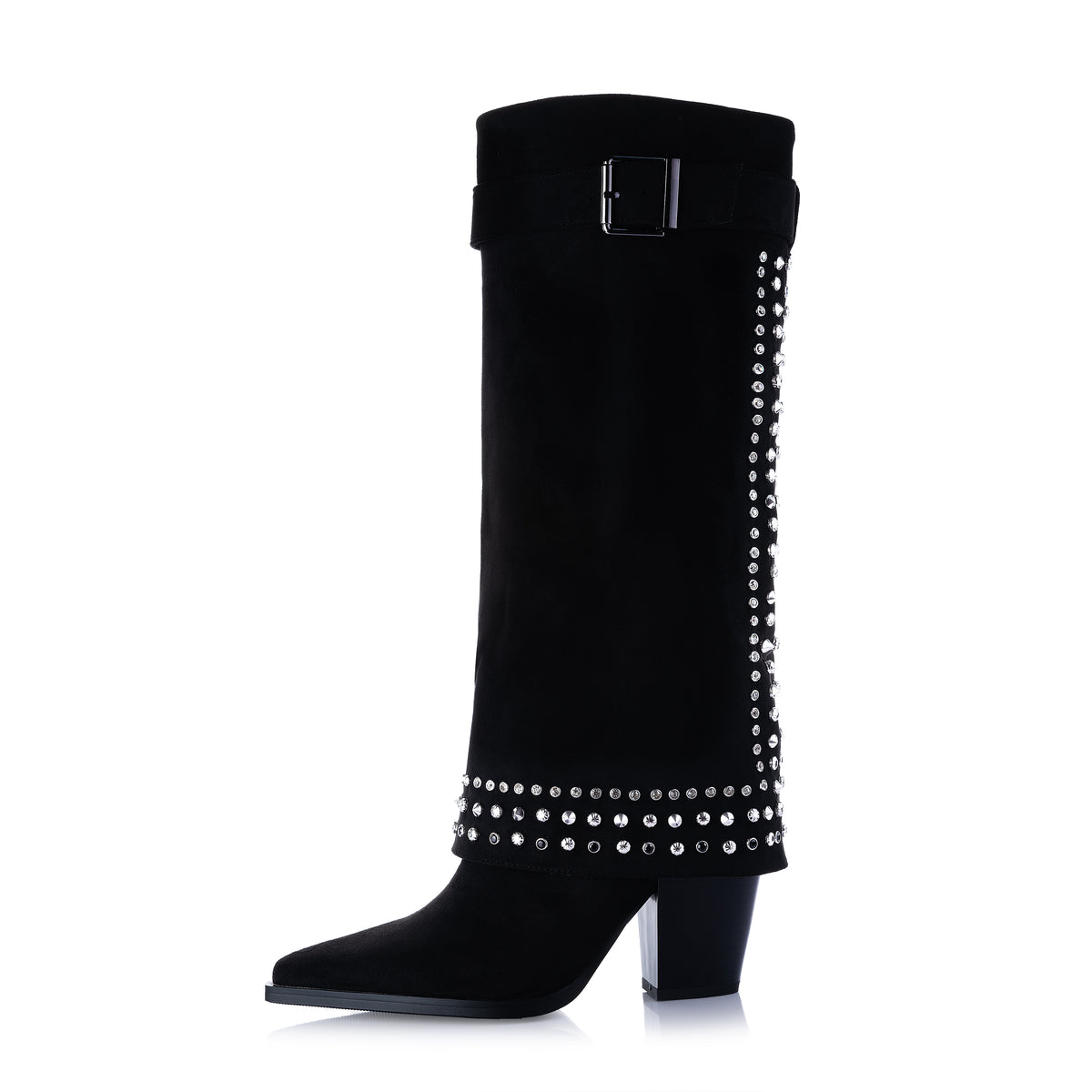 STUDDED SUEDE BOOT - Black / 37