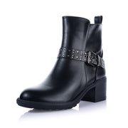 This robust Black Ankle Boot is crafted from textured leather, designed for durability and style. It features a stable, chunky...